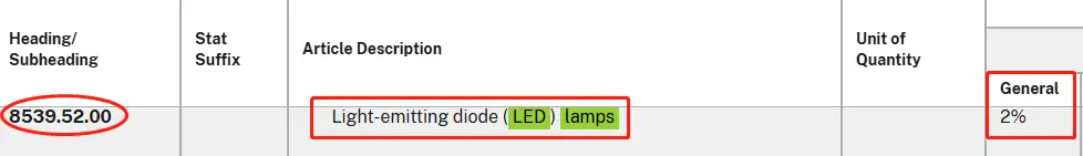 Import duties on LED lights from China can vary based on the type of LED lighting and the tax policies of the importing country. To find the correct duty rate, check the LED light HS codes with your supplier or search on your country’s official Customs website. Let’s take the US as an example.